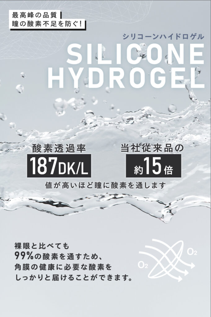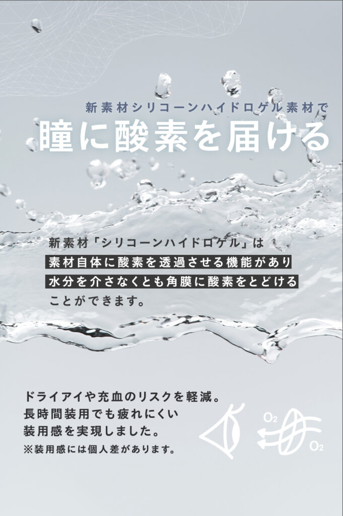 ◆酸素透過率15倍“シリコーンハイドロゲル”素材を採用。