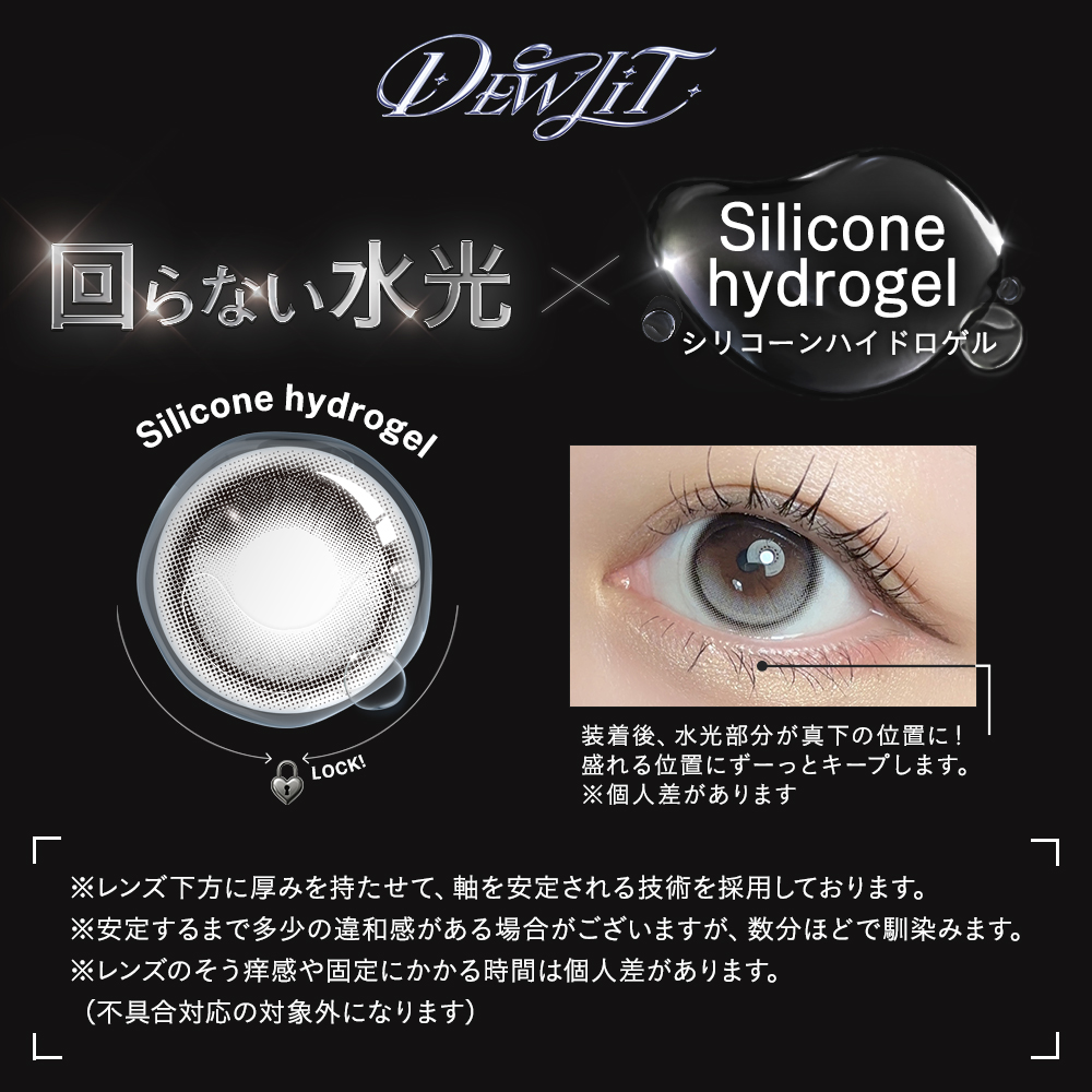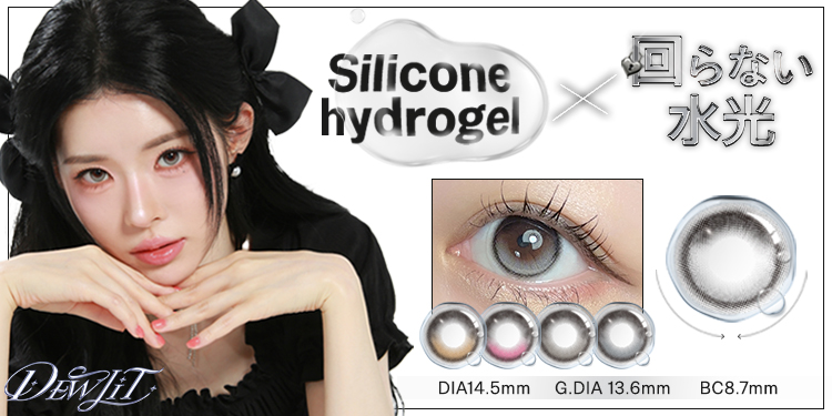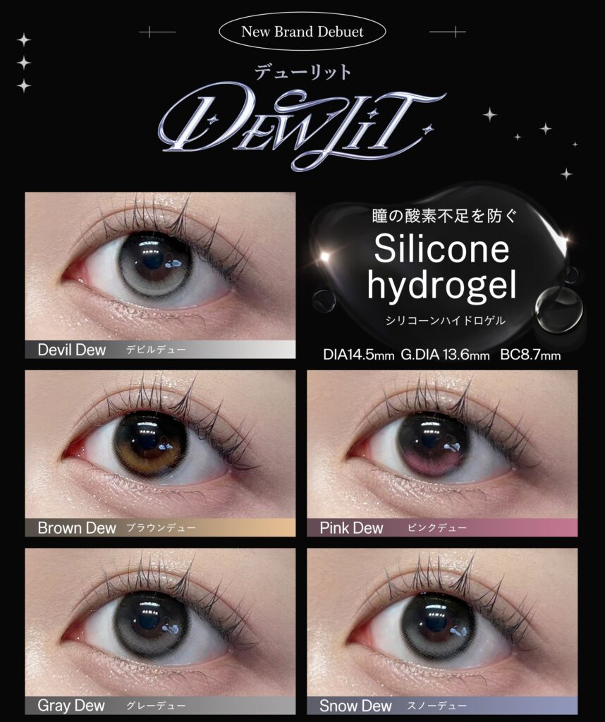 シリコーンハイドロゲル素材の回らない水光カラコン新ブランド「Dewlit(デューリット)」誕生!!